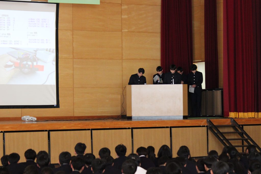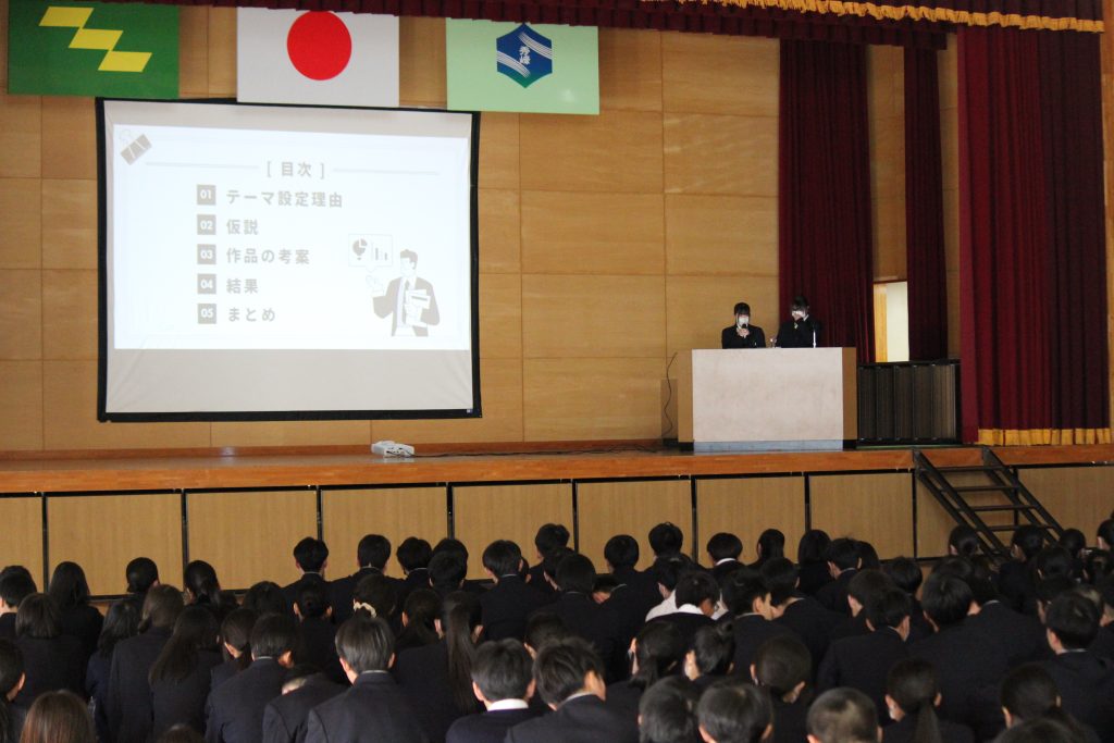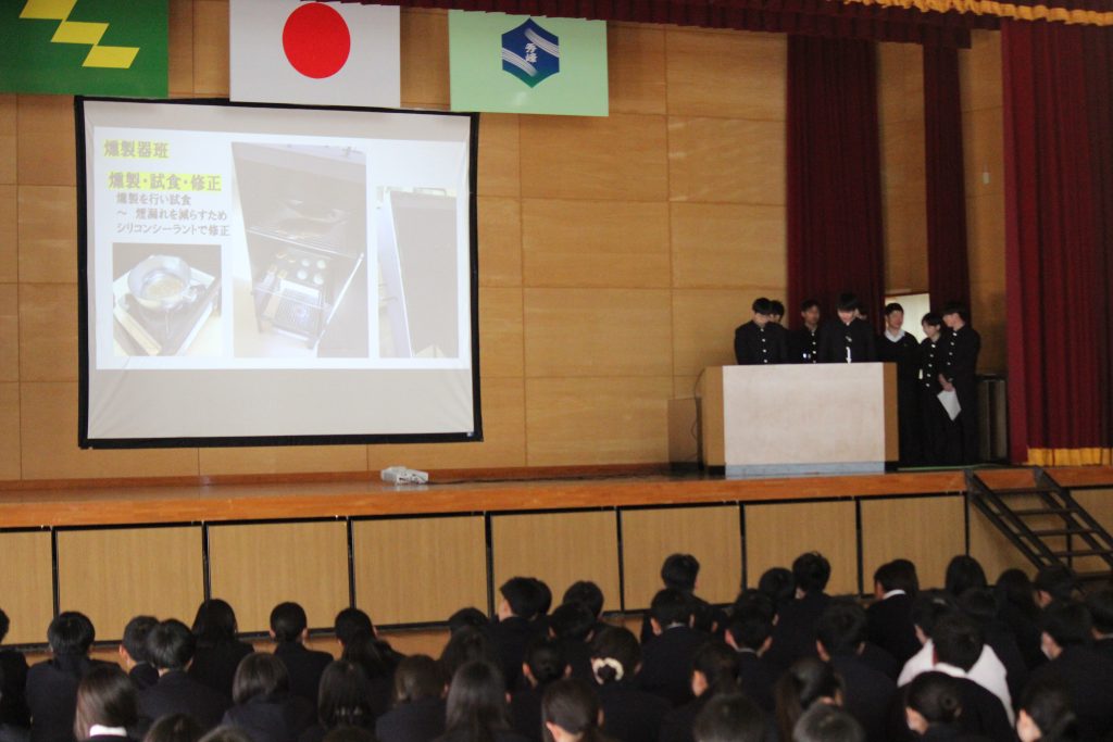 1月30日(金)、校内学習成果発表会が行われ、各科の生徒が体育館にて今までの取り組みの発表を行いました。