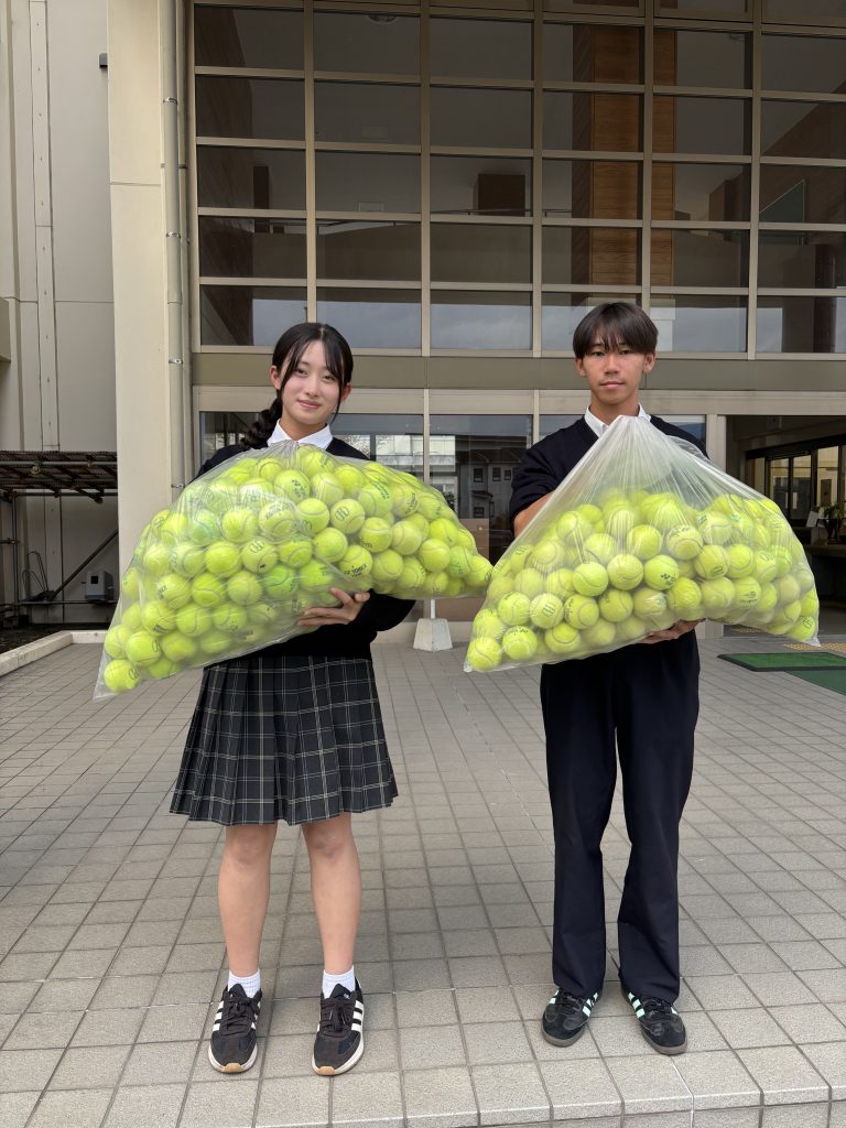 本校テニス部がテニスボールを提供